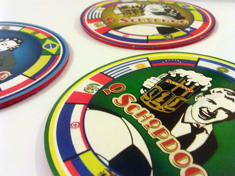 80.000 posavasos en goma eva para la empresa de comida rápida Shopdog, con distintos motivos del mundial de Sudáfrica.